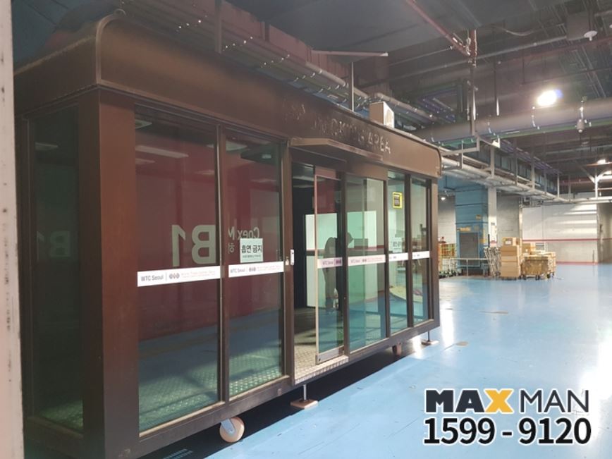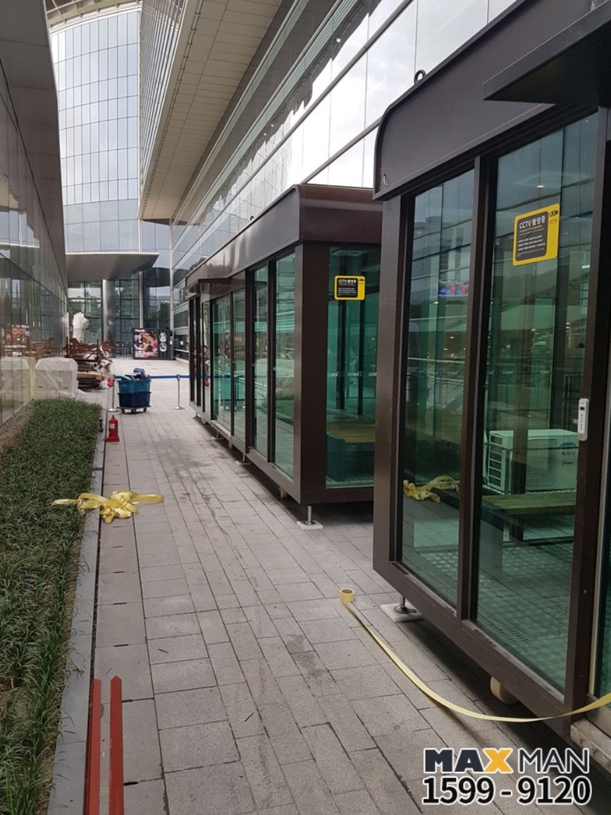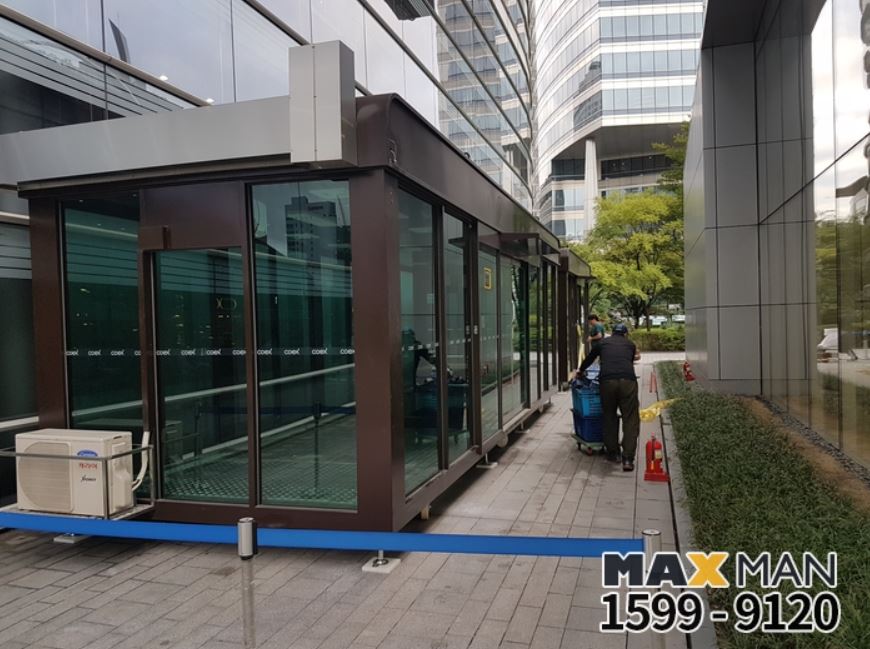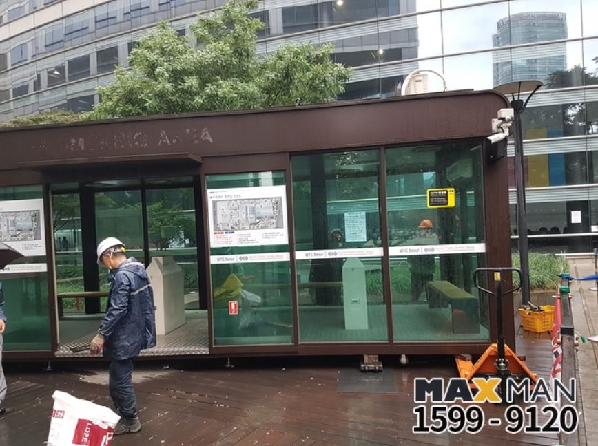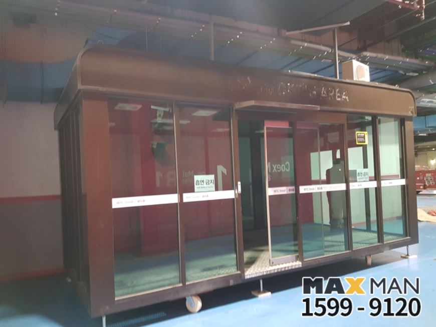 오늘은 코엑스 흡연부스 이전 설치 현장입니다.